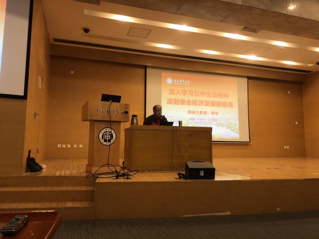 bevictor伟德官网把十九届五中全会精神进课堂、进教材、进老员工头脑作为当前最重要的教学科研任务来抓。11月24日下午,“深入学习五中全会精神,深刻领会经济发展新格局”主题宣讲在敏达学术报告厅的思政课堂开讲。南京师范大学博士生导师、傅康生教授主讲。主题宣讲由bevictor伟德官网经理赵欢春主持。