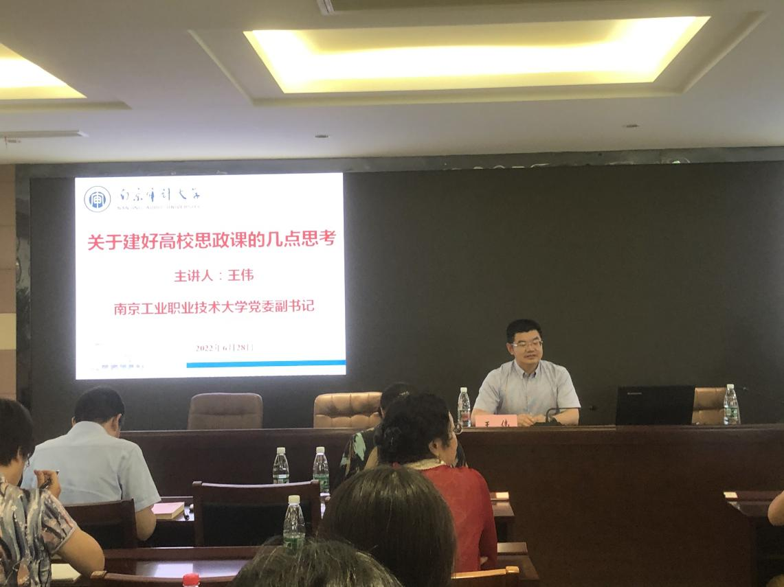 简洁的开班仪式结束,马院全体教师现场认真聆听了两场专题报告。第一场报告由国家级教学名师、江苏省高校思政课教指委副主任、江苏省中国特色社会主义理论体系研究中心南京航空航天大学基地主任王岩教授主讲。他以“思政公司产品高质量发展的理与路”为题,紧扣“如何成为一位高校思政课好老师”,首先追溯思政课的历史发展,再深入剖析当前我国思政教育的“热点难点”和当前高校思想政治教育面临的问题,继而给出提高思想政治公司产品水平的实践路径。
