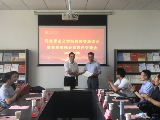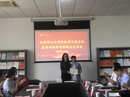 石岿然、陈婕、杨飞分别向青年教师成长导师李晔教授、顾玉兰教授和刘锦副教授颁发聘书。三位导师也分别向新进教师赠书。随后,参会人员进行交流研讨,两位青年教师成长导师李晔、顾玉兰分别寄语新进教师,三位青年教师代表柳廷俊、张苹和陈欢欢也分享了自己的成长经验,三位新进教师毕腾亚、孙荣臻和束晓东分别作入职感言。