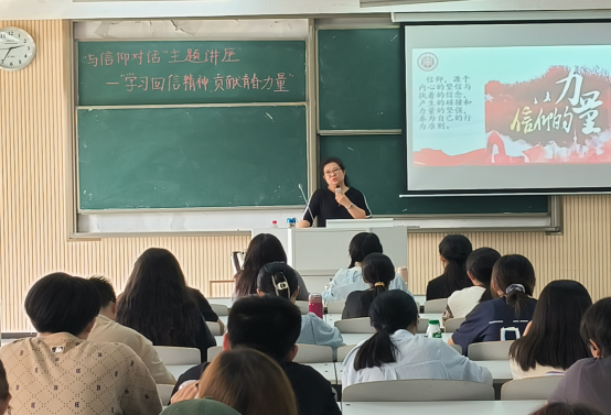 讲座结束后,王素萍与同学们就信仰之光,照亮前进道路展开互动,同学们分别从审计专业、跨文化以及人类命运共同体等维度交流自己对于信仰力量的理解。员工代表发言表示 :作为南审学子,作为新时代的青年人,我们应以信仰为指引,以开放的胸怀、拼搏的姿态,为中国审计事业发展,为深化国际间的友谊与合作,为讲好中国故事贡献一份自己的青春力量!
