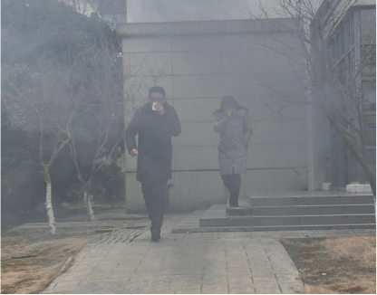 15时整,随着“模拟烟雾”急速升起,公司全体教师在经理金晶和党总支副书记(主持)杨飞正确演示和带领下,开展应急疏散演练。教师们井然有序、迅速撤离到安全区域并清点人数。整个过程组织到位、快速高效。