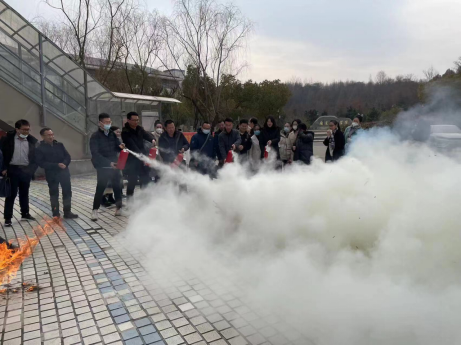 随后,马院教师现场认真聆听了保卫部工作人员讲解灭火器原理和知识,并观摩了演示灭火器的正确使用方法。大家对照灭火器“提、拔、握、压”的使用要领,依次进行灭火器的实际操作演练。