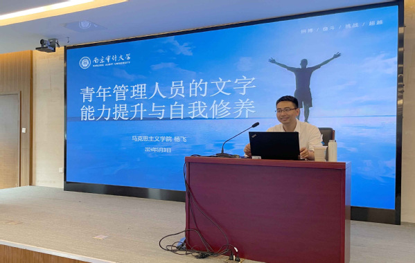 5月31日下午,杨飞在中和楼414报告厅为机关青年教职工做“青年管理人员的文字能力提升与自我修养”主题报告。他从三个方面分析为什么青年管理人员要提高文字能力,并结合自己工作经历和实践,就如何写好一篇符合规范的教育管理论文与在座青年干部交流心得,讲座他最后分享了收集的提高写作能力的资料包,赢得了大家的赞誉。