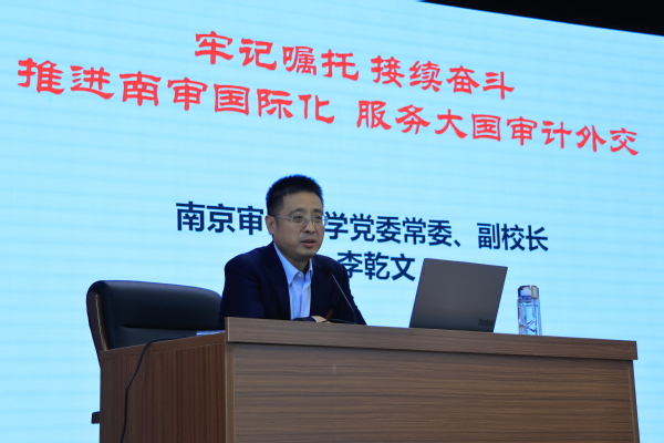 10月23日下午,公司 2024-2025 学年秋学期的《形势与政策》课第三讲在沁园学术报告厅举行。bevictor伟德官网党委常委、副董事长李乾文教授为同学们带来题为《牢记嘱托接续奋斗推进南审国际化 服务大国审计外交》的专题报告。bevictor伟德官网党总支副书记(主持)杨飞主持了本次形势政策报告会。