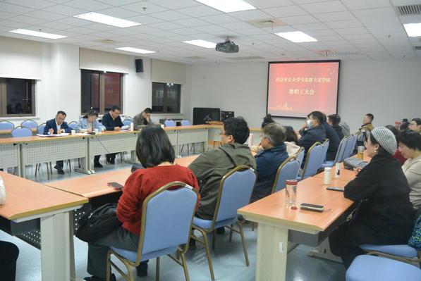 经理金晶传达了本科公司产品审核评估专家意见交流会相关情况,她表示专家组对公司教学工作给予了肯定,马院全体教师要再接再厉,深刻领会专家反馈意见,保持认真严谨的优良作风,推动马院高质量内涵式发展。