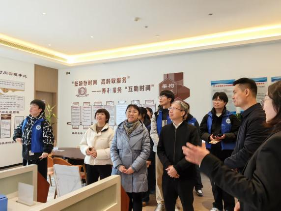 在高淳区养老服务指导中心,孔爱国副局长详细介绍了高淳区“淳享互助”农村互助养老睦邻点建设情况,以及创新探索的“党建+村民自治+农村互助养老”的工作机制;养老服务指导中心负责人叶志文介绍了高淳区乡村互助睦邻点建设历程、虚拟养老院项目、养老互助时间项目等养老服务基本情况,并详细解答了师生关于“互助时间”“银发顾问”等服务功能的问题。